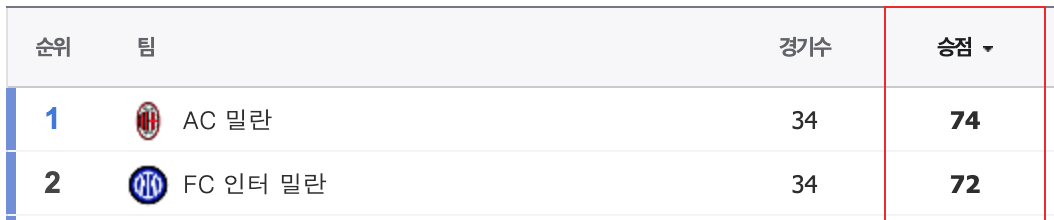 승점 드랍하면서 AC밀란의 우승 확률은 더 높아지고....